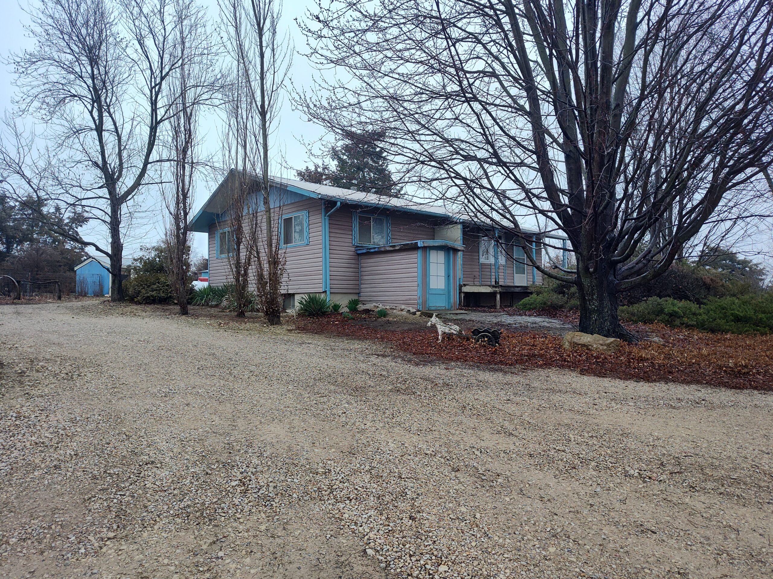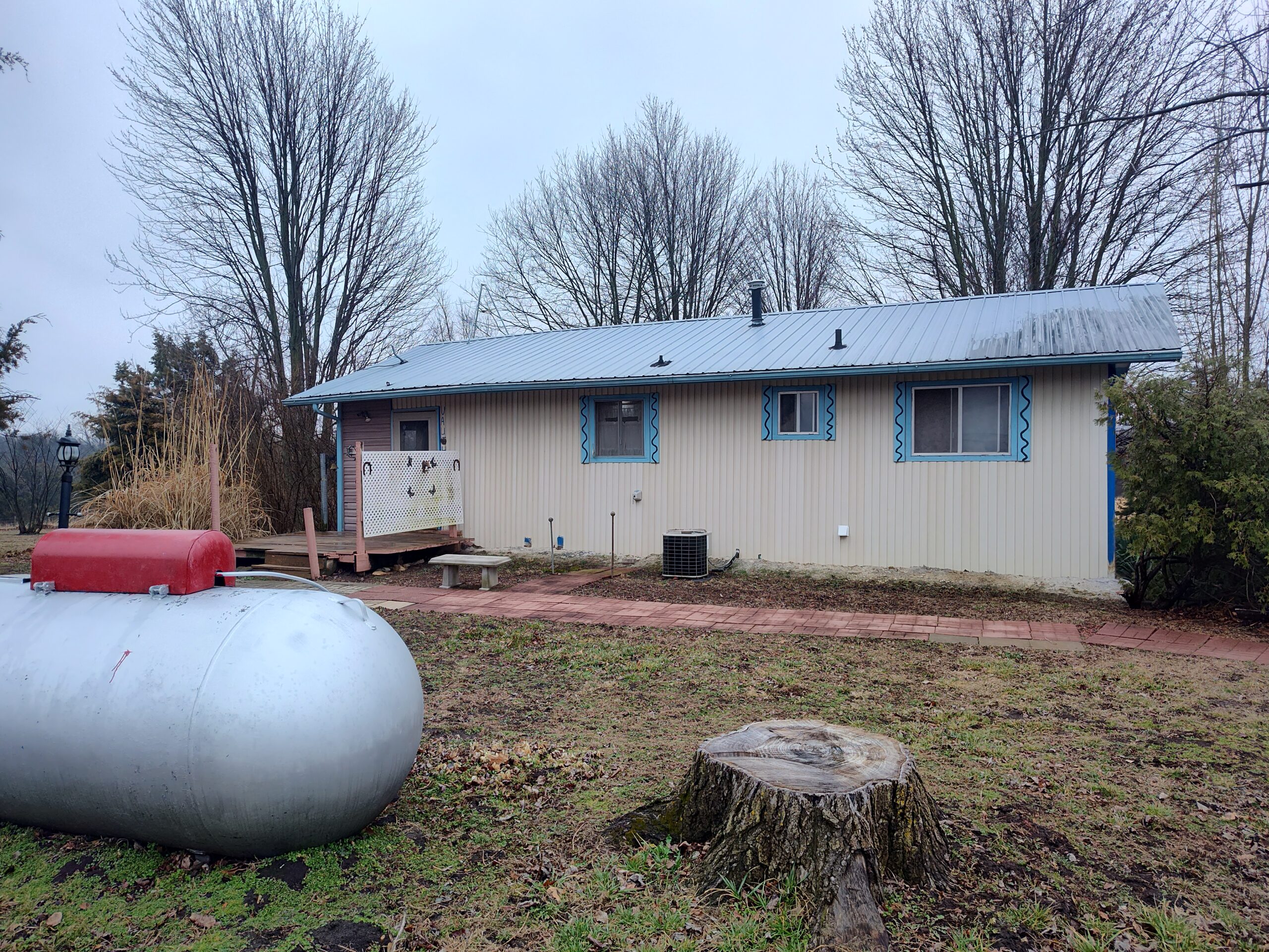 Two bedroom ranch style home is tucked away back in the trees down this long winding driveway. Home sits on 25 acres with deer and other wildlife right out the front door and borders a lake. Home has full basement unfinished for more room with inside and outside entrance. Washer and dryer currently is in the 2nd bedroom with hookups in basement also. Lots of small buildings besides the garage and carports. Ideal for hobby style farm to have your own calves, pigs, chickens, ducks, horses, and whatever else your heart desires. Home does need some TLC and is being sold as is.